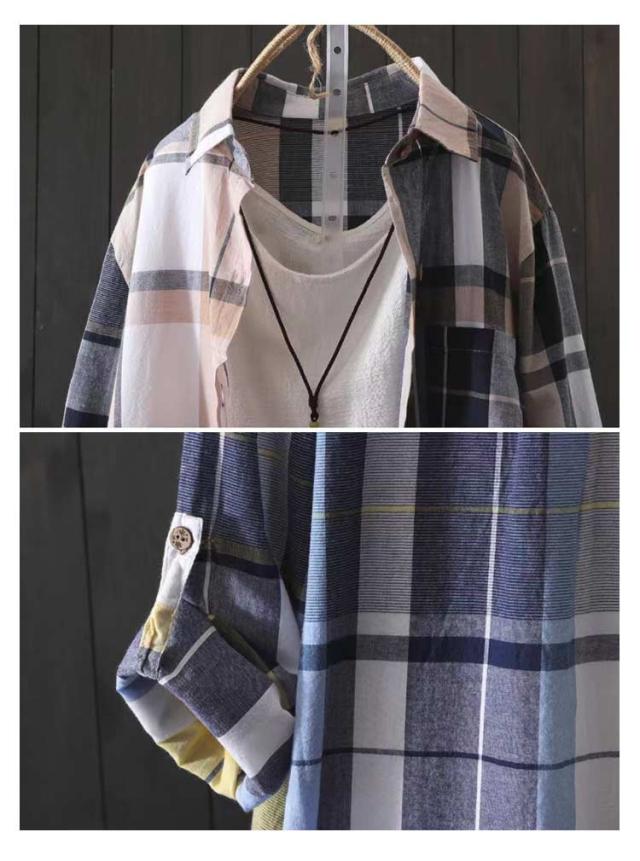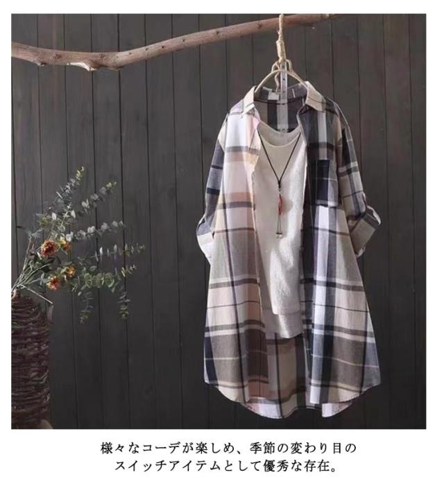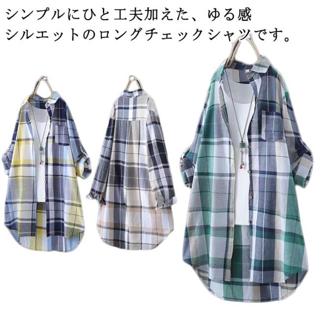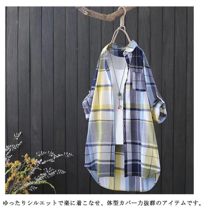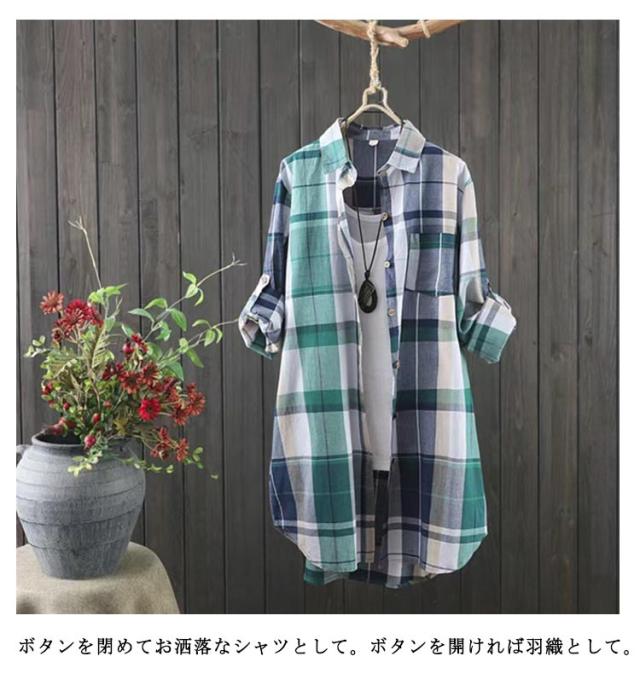 シャツワンピース ロングシャツ レディース 前開き シャツ ワンピース ワンピース チュニック カジュアル チュニック トップス 長袖 ミニワンピ チェック柄シャツ 春秋 体型カバー カーディガン 冷房対策 紫外線対策 きれいめ トップス おしゃれ