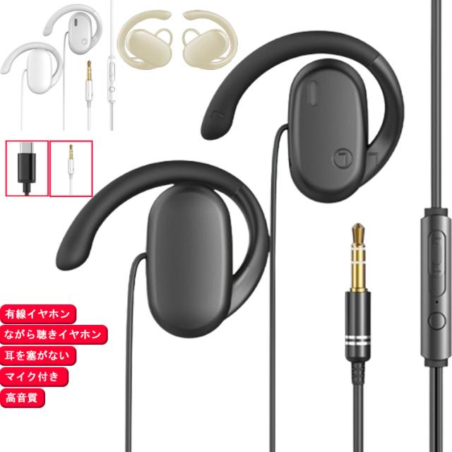 3.5mm ハンズフリー通話 オープンイヤー マイク付き Type-C 有線 耳を塞がない マイク付きイヤホン 開放型 有線イヤホン 耳掛け式 イヤホン ながら聴きイヤホン クリア通話 ゲーミングイヤホン 空気伝導イヤホン 音量調整 テレワーク WEB会議