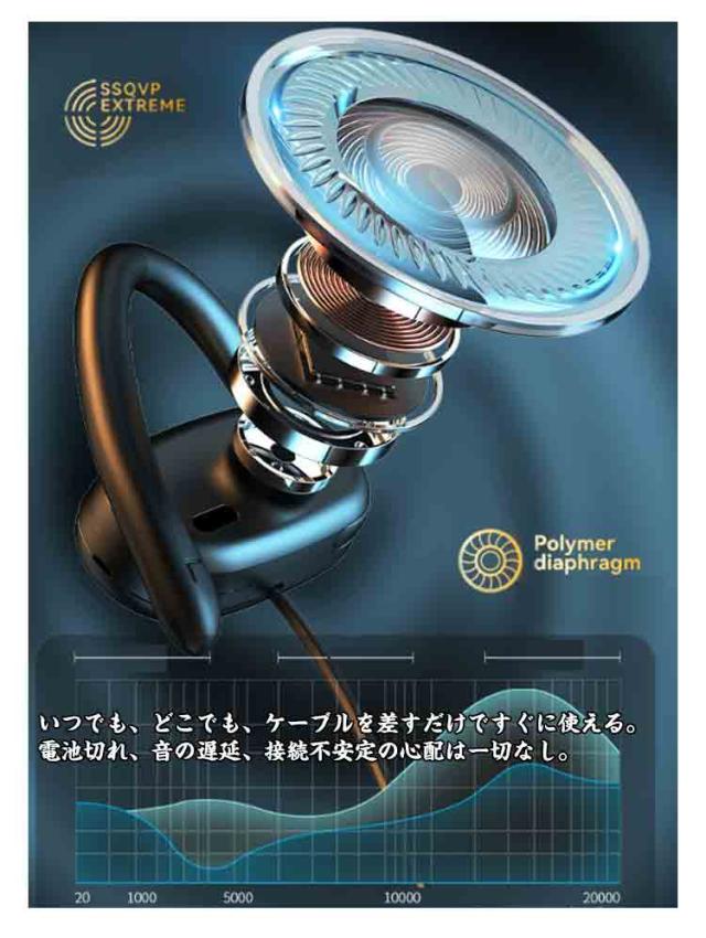 | 【耳を塞がない】負担なく使えるオープンイヤーイヤホン。従来のイヤホン特有の聞き疲れや耳の中の蒸れによる不快感がなく、長時間使用しても疲れにくい。空気伝導を採用したため、骨伝導イヤホンより違和感が少なく、骨伝導で聴きなれない方にはぜひこちらの空気伝導イヤホンがおすすめです。 【ながら聴きイヤホン】周りの音が聞こえる安心感。耳を塞がないため、周囲に気を配りながら音楽や番組を楽めます。外出時に車が迫る音、電車のアナウンス、いざとなる時の警報音、家事または仕事中の呼びかけ音などを聞き逃す心配はありません。また、耳を塞がないので自分の話し声がこもらず聞こえるため、毎回取り外す必要がなく、装着したまま自然な会話が可能。 【有線イヤホン】ペアリング不要、Bluetooth設定不要、充電不要。いつでも、どこでも、ケーブルを差すだけですぐに使える。電池切れ、音の遅延、接続不安定の心配は一切なし。オンライン会議に最適。Bluetooth機能のないデスクトップパソコンにも使えます。 【高音質】開放的で広がりのある音場と圧迫感のない自然な低音感のあるサウンドを実現。音楽リスニングや動画視聴、ゲームアプリなどを音場感あるサウンドで楽しめます。 【マイク付き】高品質なマイクが内蔵されており、有線接続による非圧縮の音声信号の特性と合わせることによりクリアな通話を実現します。 【耳掛け式】両耳合わせて28gの超軽量タイプで、長時間装着しても耳への負担が少なく、付けるのを感じられないほどの軽さです。また、耳の形にピッタリフィットする耳掛け式で、激しい運動中も落下の心配もありません。 | |