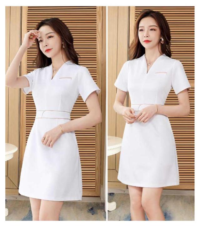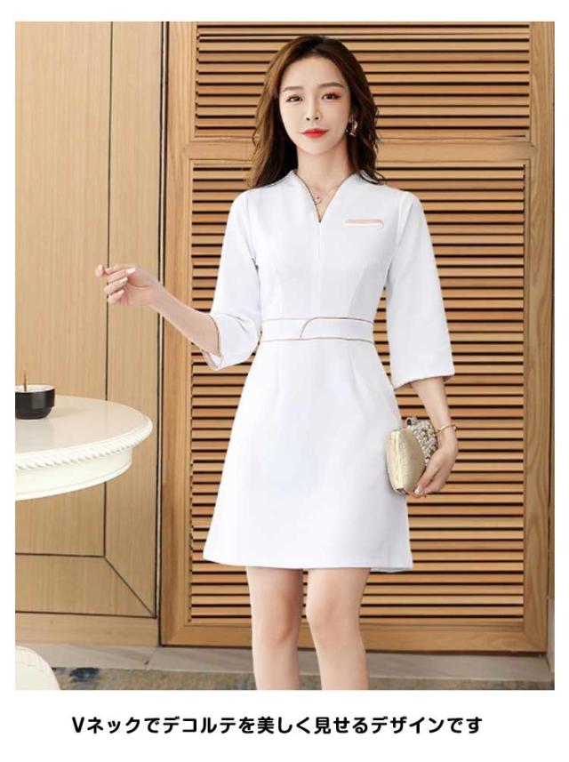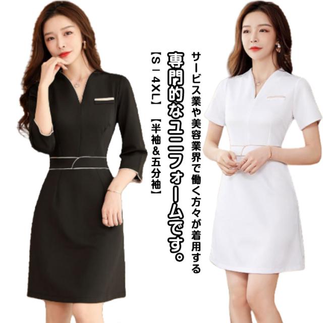 パイピング ワンピース 制服 サロン 五分袖 ユニフォーム 半袖 Vネック エステ おしゃれ 通勤 制服 サロン ネイル 無地 エステ 制服 美容 歯科衛生士 サロンウェア 保育園 レディース 仕事 ホテル 女性 介護士 制服 作業服 大きいサイズ 黒 白 エステユニフォーム