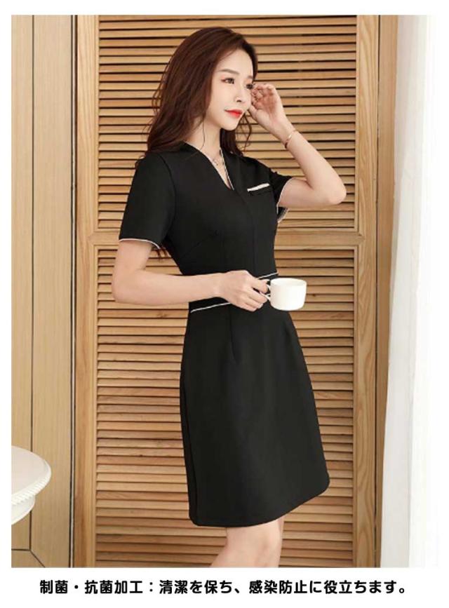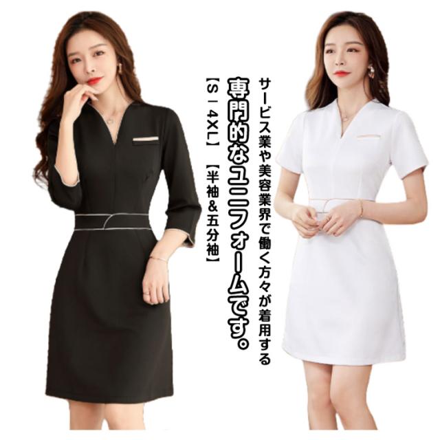 レディース ワンピース サロン 美容 ユニフォーム 無地 サロン 制服 半袖 ユニフォーム 五分袖 制服 おしゃれ エステ 通勤 エステ ネイル 女性 パイピング サロンウェア 歯科衛生士 制服 仕事 ホテル 保育園 介護士 制服 作業服 大きいサイズ 黒 白 エステユニフォーム
