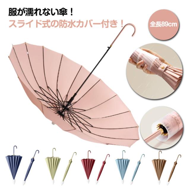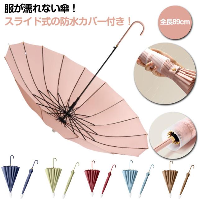 超撥水 【送料無料】 カバー 濡れない 長傘 スライド式カバー付き傘 防水カバー 女性 16本骨 傘 梅雨対策 大判サイズ UVカット 耐強風 傘 シンプル かさ 軽量 晴雨兼用傘 メンズ レディース 【送料無料】 男性