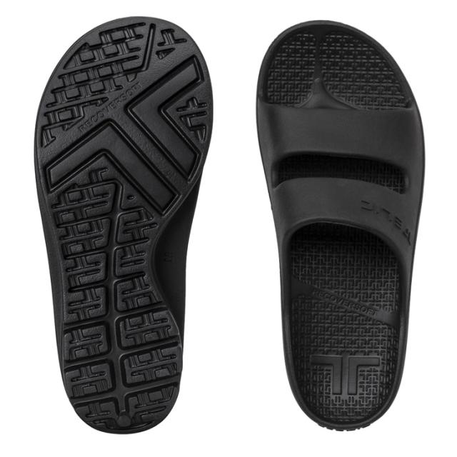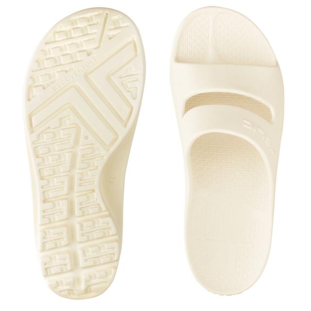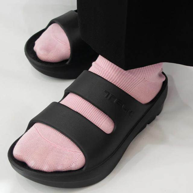 靴下と合わせても着用可能なスライドタイプのリカバリーサンダル。