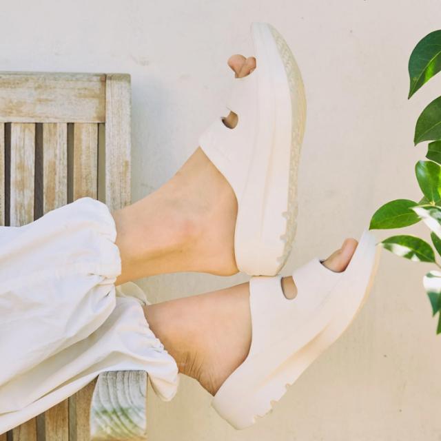 厚底仕様で安定感とクッション性を実現し、スタイルアップ効果も。