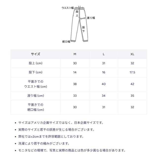 膝上丈で裾口が広く、股上が深いリラックスシルエット。