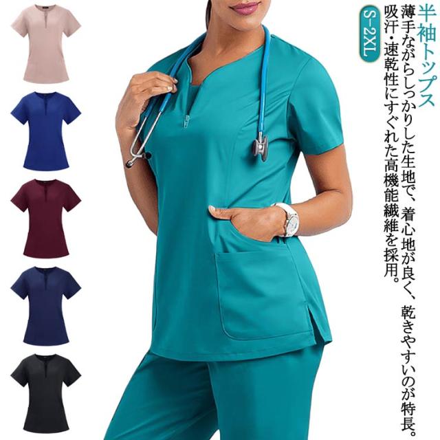 スクラブ トップス 半袖 医師 レディース 吸汗 大きいサイズ ユニフォーム メンズ 半袖 男性 白衣 ストレッチ 作業服 ナース服 看護師 速乾 女性 医療白衣 手術着 医療 制服 介護士 介護服 おしゃれ 歯医者 サロン 医務衣 介護施設 春夏