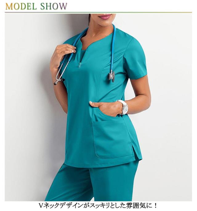 | 半袖 トップス。 薄手ながらしっかりした生地で、着心地が良く、乾きやすいのが特長。吸汗・速乾性にすぐれた高機能繊維を採用。 Vネックデザインがスッキリとした雰囲気に! ポケット 収納力も充分! 洗濯を繰り返しても劣化しにくい、丈夫な工業洗濯対応素材。 医師、看護師、歯科助手、医学・介護学生、病院職員、薬剤師、その他医療分野の職業に最適です。 また、エステサロン、整体、美容室、動物病院、食品工場、がっつり家事など、作業着として様々なシーンでご着用できます。 | |