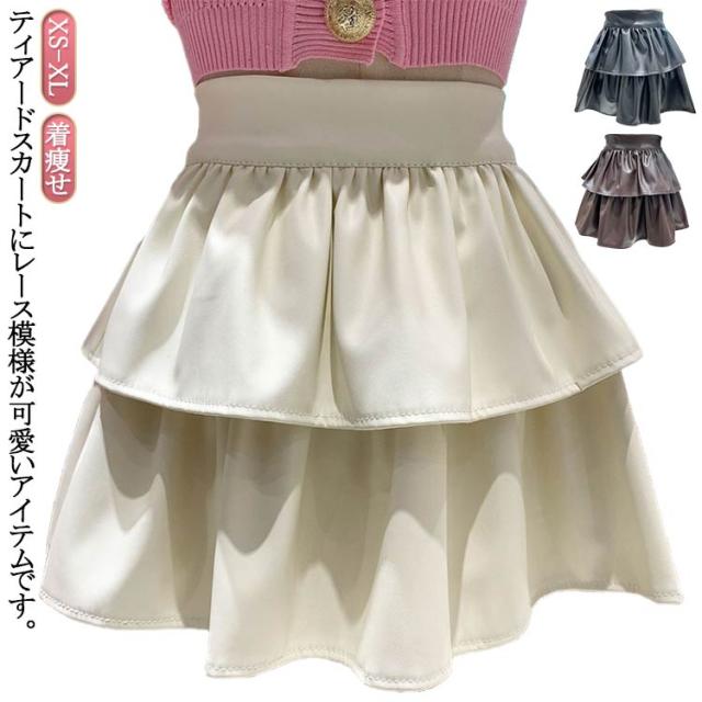 フレアスカート レディース ショートスカート ミニスカート ショートスカート 着痩せ PU スカート ティアードスカート 無地 春 秋 冬 ハイウエスト 美脚 足長 Aライン 可愛い おしゃれ 韓国ファッション