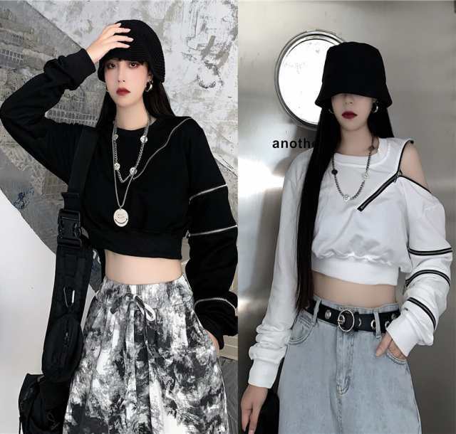 パーカー 長袖 アシメジップ トップス ロリ ゴシック 黒 セクシー へそ出し