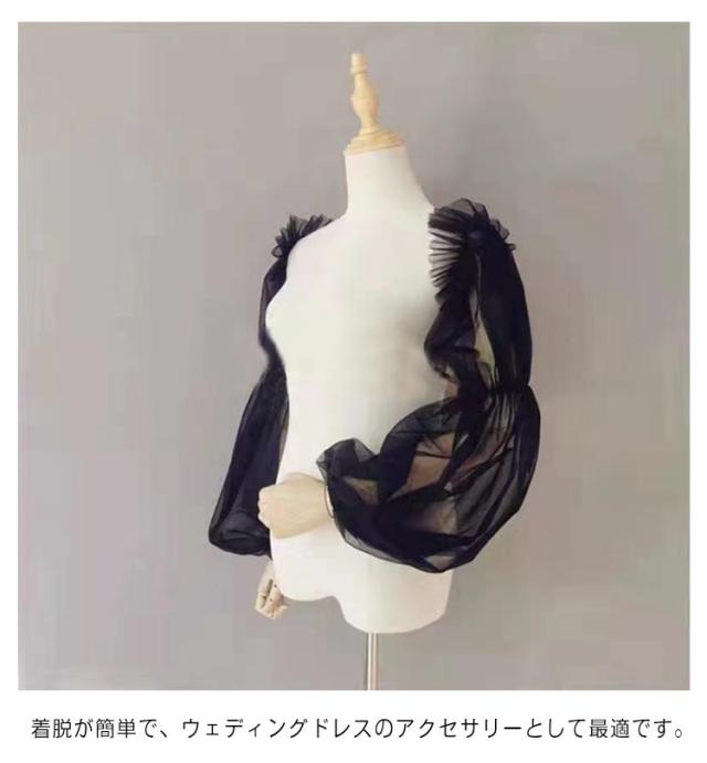 パフスリープ 付け袖 二の腕カバー アームカバー 付け袖 レース ボレロ 羽織り ケーブル ショール つけ袖 パーティードレス用 ウェディングドレス用 ワンピース用 ホワイト ブラック 披露宴 二次会 発表会 演奏会 お呼ばれ ブライダル 花嫁