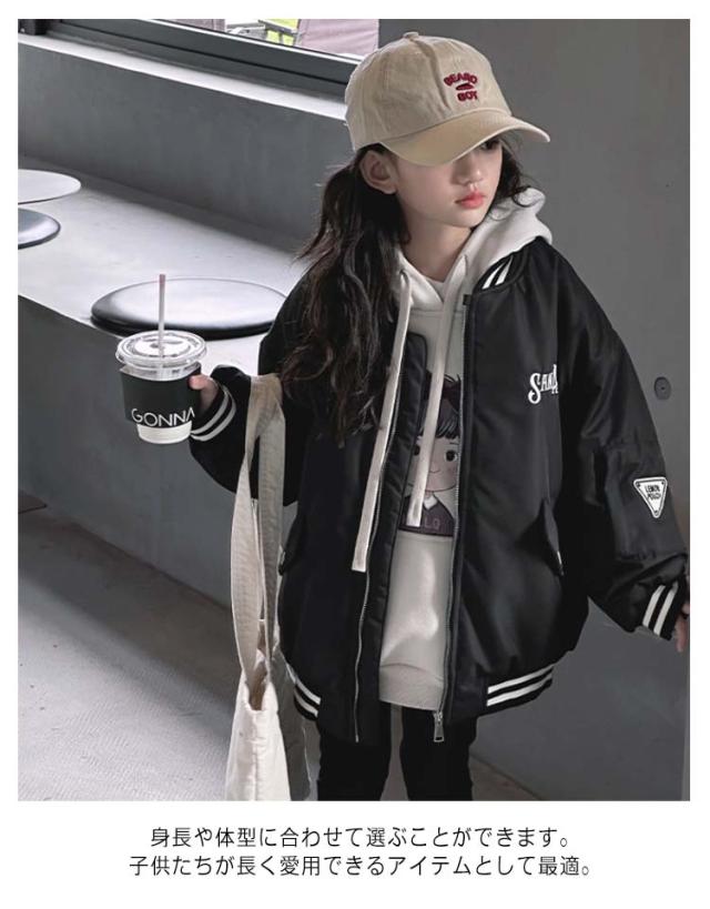 ブルゾン スタジャン アウター 春 上着 男の子 ジャケット 冬 女の子 冬コート 秋 長袖 MA-1 ゆったり キッズ スタジャン 羽織り 秋コート 秋ジャケット 刺繍 通気性 春 130 子供服 通園 通学 中綿 防寒 冬 通勤 女児 ブラック ワイン 120 秋 140 150 160