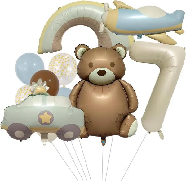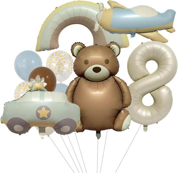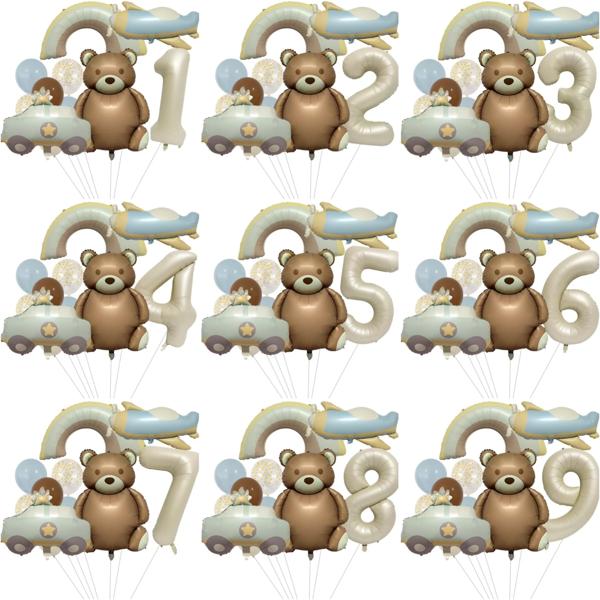 誕生日パーティーの装飾用のクマの風船、パトカー、戦闘機の風船、航空機のアルミホイルの風船、最初のOld-9Th、装飾用品