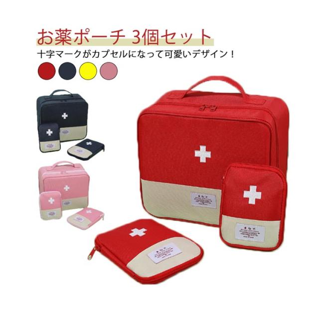 3点セット 薬ポーチ ミニポーチ メディカルポーチ 救急箱ポーチ お薬ポーチ ファーストエイド 薬箱 小物入れ 大容量 応急処理バッグ 救急セット 救急パック ボックス 手提げ 収納箱 医療箱 ハンドル付き 防災 救急用 医薬品 安全対策 持ち出し用 家庭用 学校 アウトドア 登山