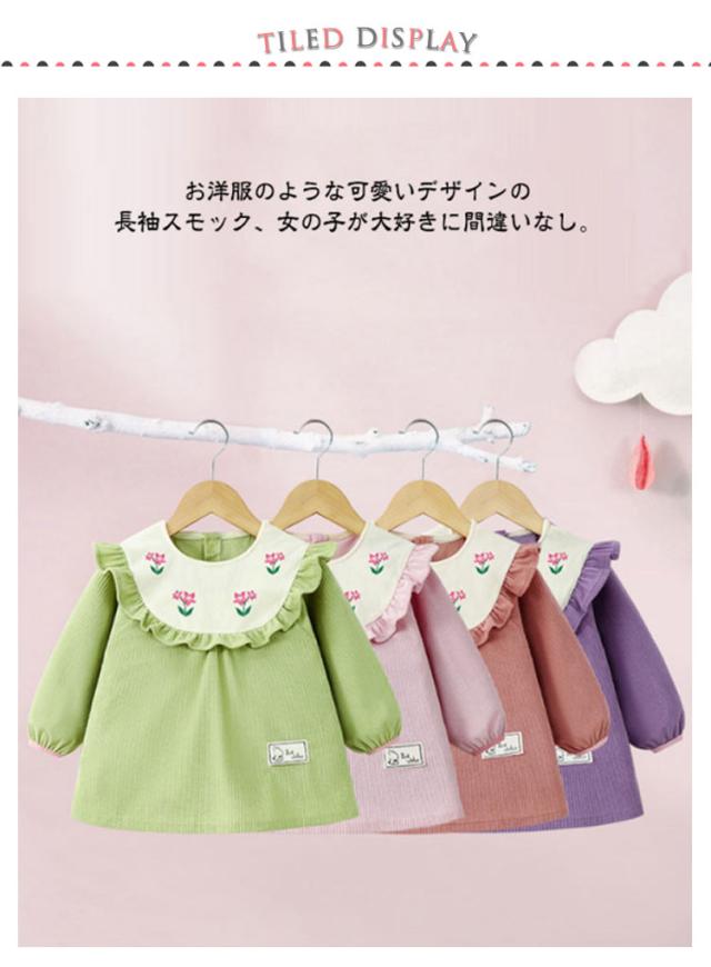 長袖スモック 子供 お食事 スモック 可愛い ブラウス お砂場着 ベビースモック 幼稚園 汚れ防止 フリル 刺繍 汚れ防止 絵画 エプロン 外遊び スモック 女の子 保育園 砂遊び 赤ちゃん 幼児 防水エプロン 子供服 春 外遊び ギフト 90 100 110 120 送料無料