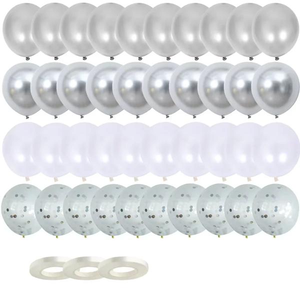 混合紙吹雪ラテックス風船 シルバー 男の子 女の子 誕生日 大人 女性 男性 パーティーの装飾 卒業式 新年の装飾 12インチ 40個