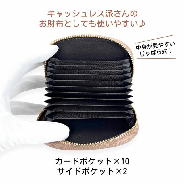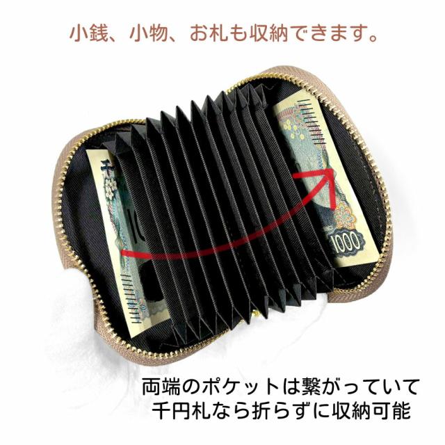 ラウンドファスナーで大きく開き、中身が見やすいじゃばら式。