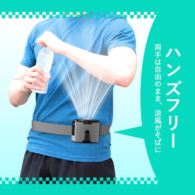 腰掛け:ベルトに付けると、衣服内に風を送り込みます。