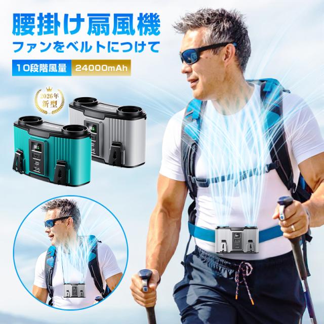 腰掛け扇風機 ベルトファン 多機能 大風量 10段階風量調節 首かけ 腰かけ 2026年新モデル モバイルバッテリー 大容量 24000mAh 小型 80時間連続稼働 軽量 静音 熱中症対策 蒸れ解消 ストラップ付き USB-A+Type-C急速充電 携帯便利 屋外作業 【PL保険加入済み製品・安心】