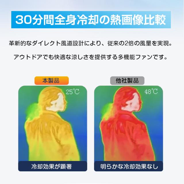 - 購入から手元に届くまでがとても速くビックリしました!! 届いてすぐに使用しましたが、想像以上に風が強く屋外でも涼しい風を浴びれるので快適でした。 しかも、モバイルバッテリーとしての機能もあるので最高で...
