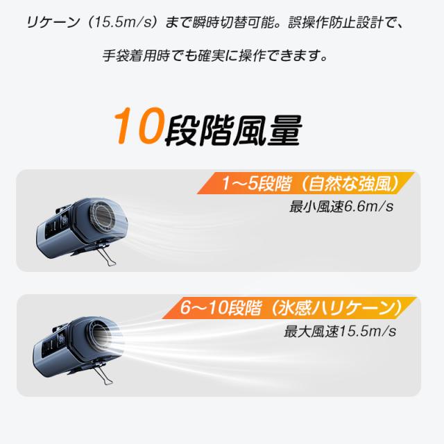 10段階の風量調整機能を搭載しており、ワンボタンで簡単に風量を選択できます。この腰掛け扇風機は心地良い微風から熱を一気に吹き飛ばす強風まで自由に調整でき、オフィスなどの静かな環境で使用してもストレスなく快適で、より仕事や勉強に集中できます。超強風で数秒以内に冷却します。炎天下での仕事や旅行をより快適にします。