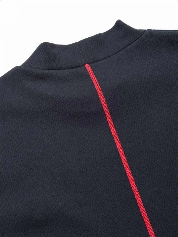 吸水性に優れ、あらゆる汗処理機能を完備した快適素材を使用したモックネックシャツ。