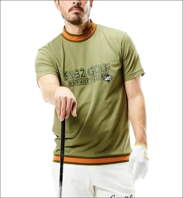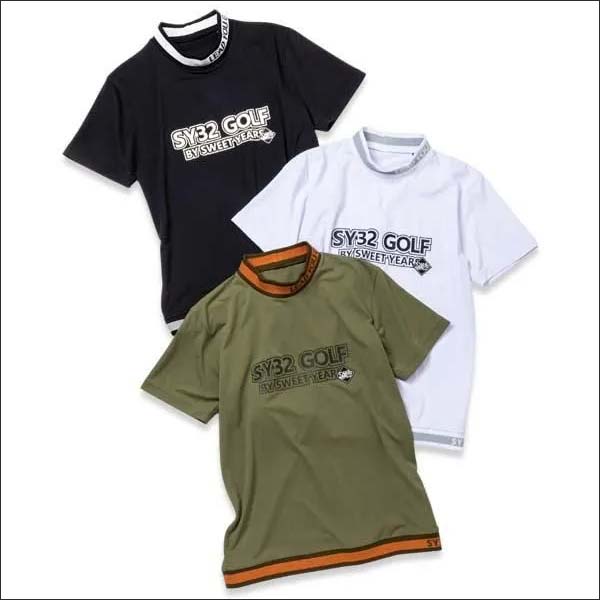 SY32 by SWEET YEARS ライト ストレッチ ロゴ モックネック 半袖シャツ ゴルフウェア メンズ 2025年春夏モデル M-XL SYG-25S038