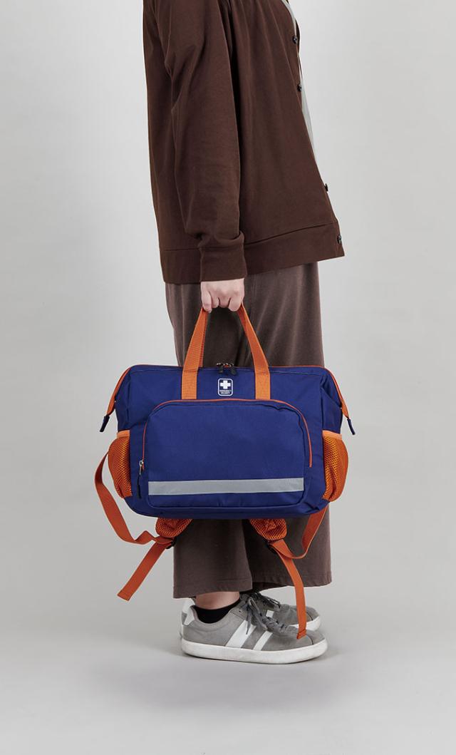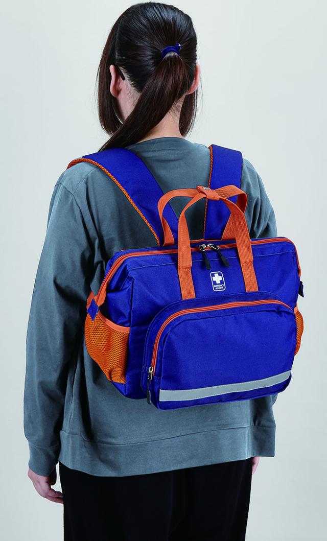 緊急時に両手を空けて避難することが出来るリュックタイプの防災セット。バッグの開口部はがま口風なので中が見やすい。女性ならではの衛生面に配慮したセット内容を充実させました。