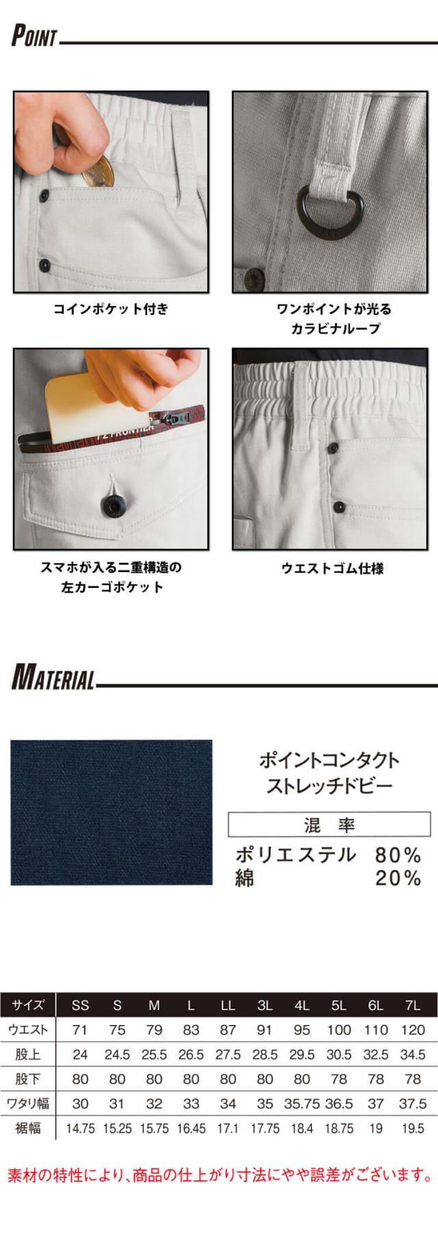 春夏 作業服 アイズフロンティア IZ FRONTIER 帯電防止 ポイントコンタクトストレッチカーゴパンツ 3152 2025年春夏新作