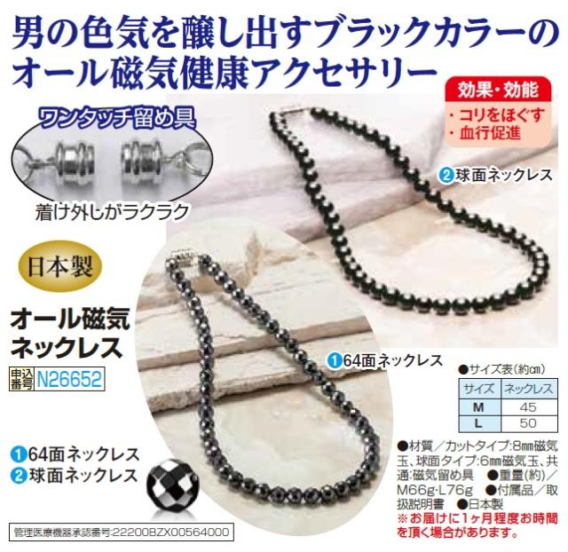 日本製 オール磁気 ネックレス 全2種 64面ネックレス 球面ネックレス ネックレス アクセサリー ブラック メンズ 紳士 シニア 男性 黒 オシャレ sk p26652