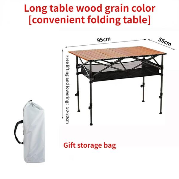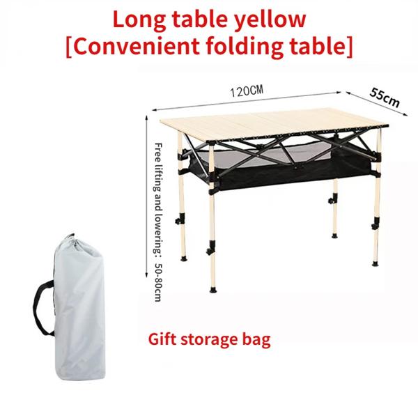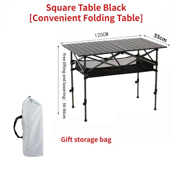 屋外用折りたたみロングテーブル、黒のキャンプテーブル、バーベキュー用に簡単に設置でき、メッシュバッグが装備されており、自由に高さを調整できます。