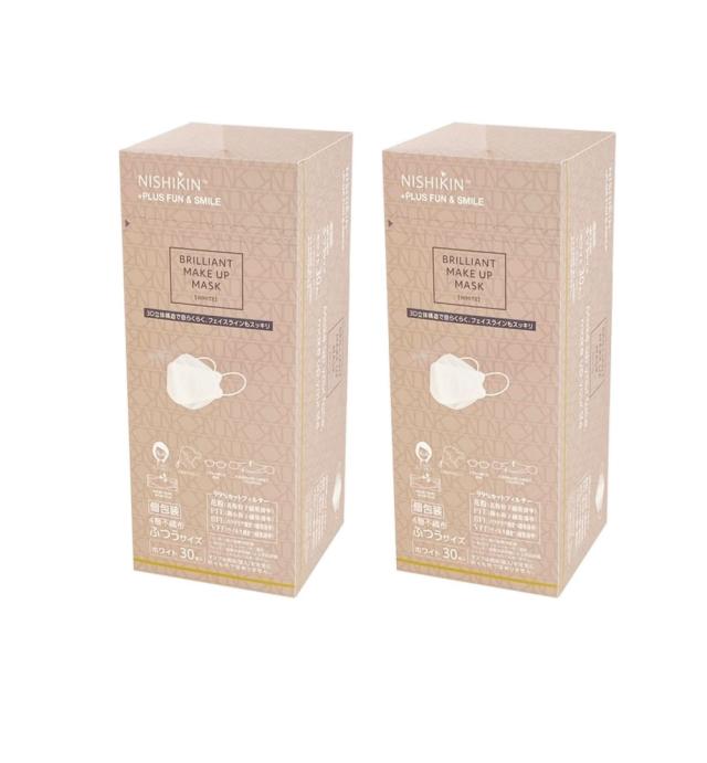 不織布マスク 使い捨て ブリリアントメイクアップマスク 白 ホワイト30枚入り×2【2個セット】送料無料 高密度4層フィルター 花粉99%カット