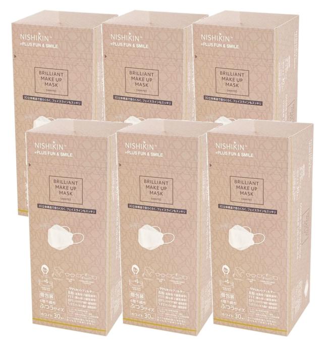 不織布マスク 使い捨て ブリリアントメイクアップマスク 白 ホワイト30枚入り×6【6個セット】送料無料 高密度4層フィルター 花粉99%カット