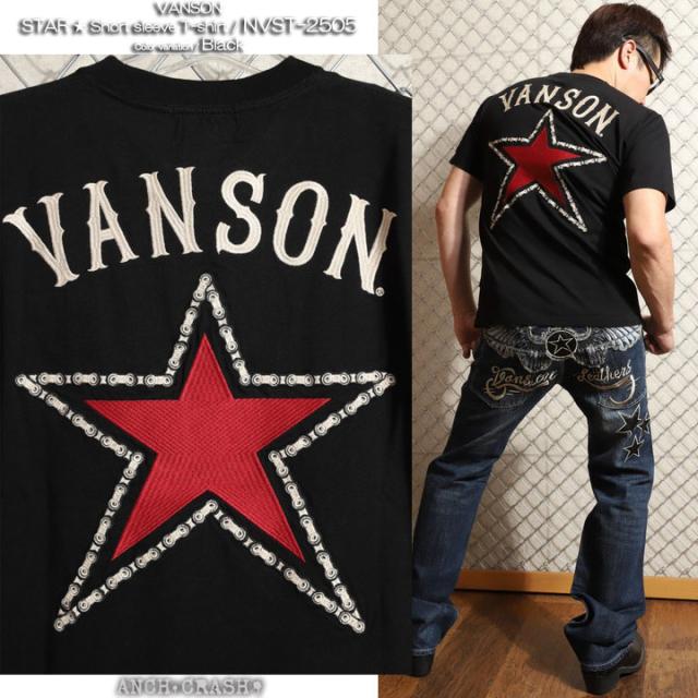 VANSON スター 半袖Tシャツ (NVST-2505) 【送料無料】バンソン 刺繍 ワッペン