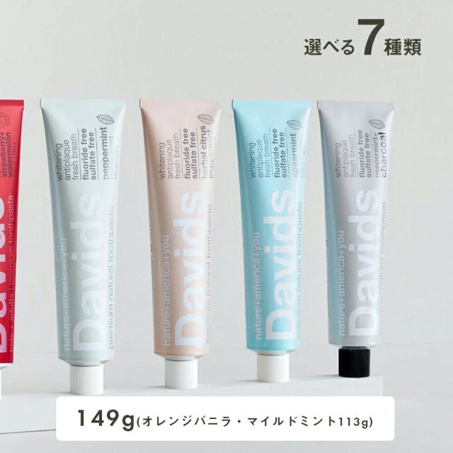 | 100%ナチュラルで完成された アメリカ生まれのトゥースペースト Davids ホワイトニング*トゥースペースト 149g(オレンジバニラ・マイルドミントは113g) | |
