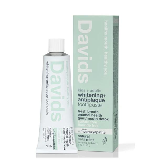 | 毎日の歯みがき。口にいれるものだから、しっかり成分を確認して選びたいですね。Davidsホワイトニング*トゥースペーストは、天然原料をベースに作られた、自然な甘さとさわやかな天然ミントフレーバーのホワイトニング*歯みがきペースト。 ブラッシングにより、「歯を白くする・歯垢を除去する・歯石の沈着を防ぐ・口臭を防ぐ」効果が期待できます。100%ナチュラル、天然由来原料のみを使用しつくられています。大人はもちろん、小さなお子さまにも◎。 なめらかでクリーミィなペーストタイプで、手みがきはもちろん、電動歯ブラシでのご使用もおすすめです。 オリジナルで調合したさわやかなミントフレーバーは、どれも後味スッキリ、ずっと爽やか長続き。 100%ナチュラルミントオイルのフレッシュなフレーバーをお楽しみください。 *ブラッシングによる | |
