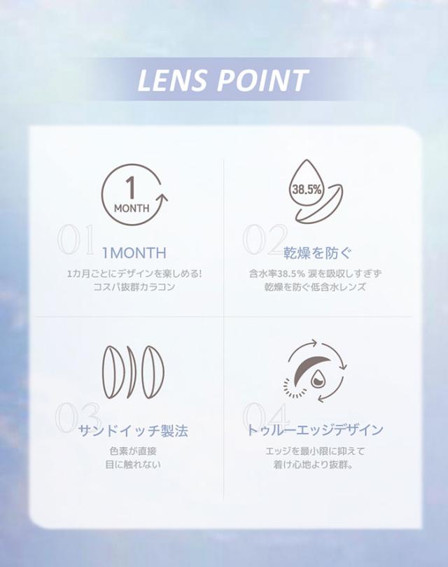 【商品詳細】 ●カラー:シークレットグレー ●直径:14.0mm ●着色直径:13.0mm ●ベースカーブ:8.6mm ●含水率:38.5% ●販売度数:±0.00、-0.50〜-8.00 ●付属品:レンズ2枚 ●使用期限:開封後1ヶ月 ●承認番号:22900BZX00292000 【区分】高度管理医療機器 【製造国】韓国 【製造販売元】株式会社レンズミー 【広告文責】株式会社トクダ TEL:06-6796-7555 【高度管理医療機器販売業許可】 第23N00119号 ■注意事項■ ●コンタクトレンズは高度医療管理機器です。 必ず眼科医の検査・処方を受けてお求めください。 ●商品の欠陥や不良など当社原因による場合には、返品・交換を受け付けさせていただきます。 商品到着後、5日以内にお電話ください。 なお、衛生用品の為、お客様都合による返品・交換は受け付けておりませんので、ご了承ください。 ●当店では、コンタクトレンズに関しまして、ご注文確定後のキャンセルは承っておりません。 ●商品の発送目安は、各商品ページにあります【配送予定】をご参考くださいませ。 |