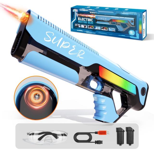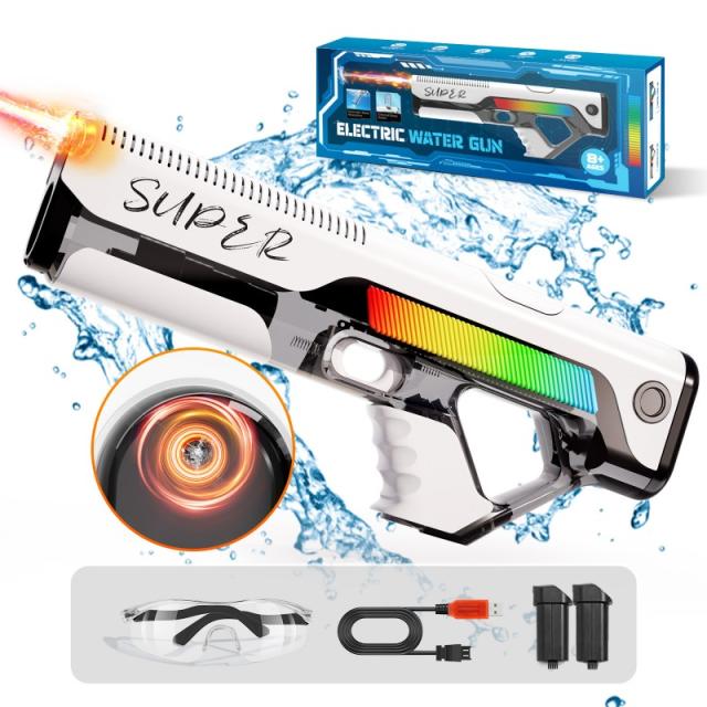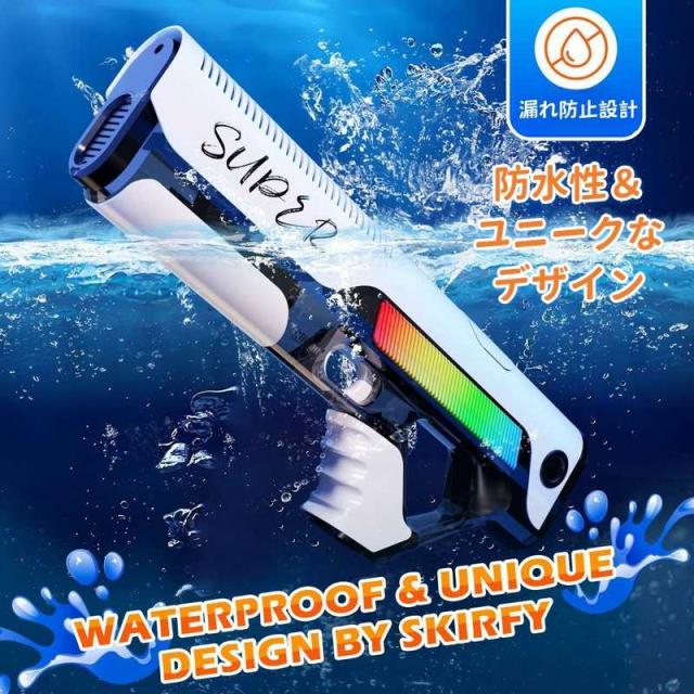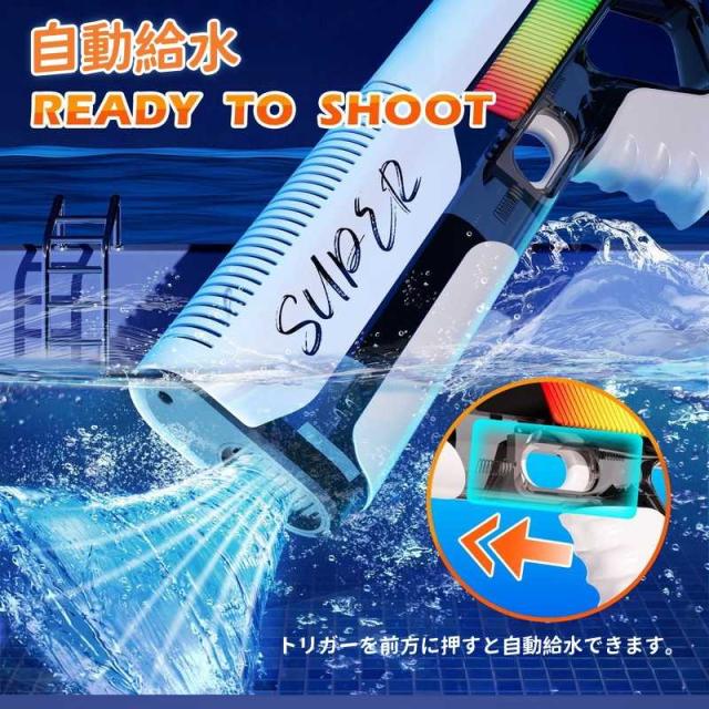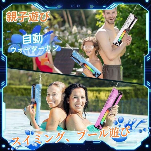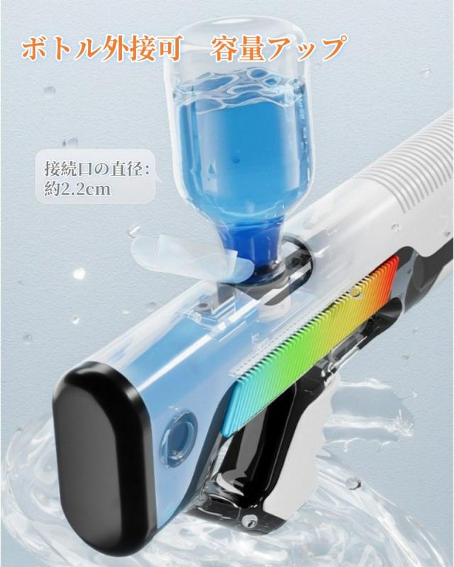 【2025新進化】電動ウォーターガン 光る 水鉄砲 電動 LEDライト&自動給水&ボトル外接可 電動水鉄砲 長距離 バッテリー2個 アウトドア