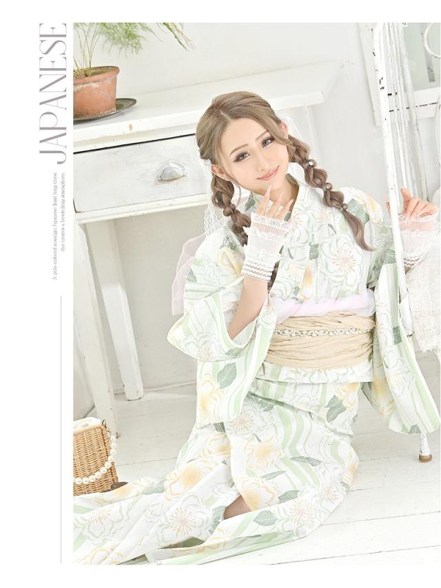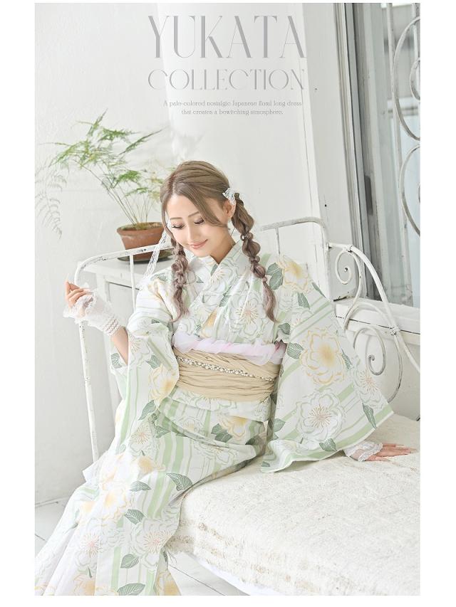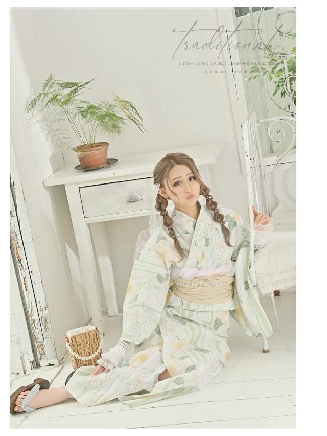 ☆ペールグリーンが絶妙な大人可愛いを完成させるレディース浴衣。