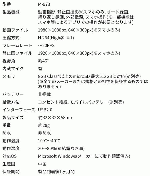■ M-973 USB-ACアダプター型カメラ ご注意事項