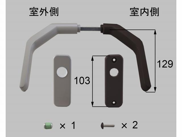 ●備考: 新日軽部品コード:SD1236‐01VC。内ハンドル・台座(各1):茶系、外ハンドル・台座(各1):グレー系、取付ねじ(M4x12トラス)x2、緩み止めねじx1