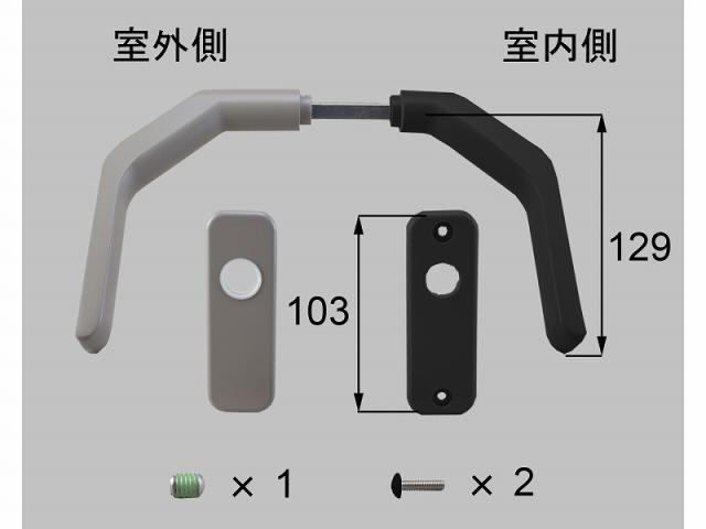 ●備考: 新日軽部品コード:SD1236‐01VM。内ハンドル・台座(各1):黒系、外ハンドル・台座(各1):グレー系、取付ねじ(M4x12トラス)x2、緩み止めねじx1