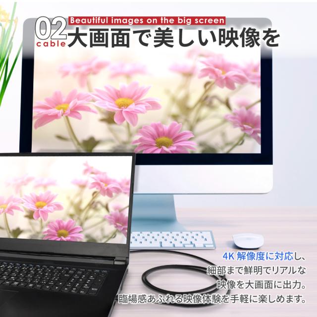 Type-C対応デバイスからテレビやモニターへ、4K映像をスムーズに出力できる変換ケーブル。
