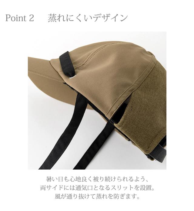 深すぎず浅すぎない、絶妙な被り心地もシルエットをきれいに魅せるポイントです。暑い日も心地良く被り続けられるよう、両サイドには通気口となるスリットを設置。風が通り抜けて蒸れを防ぎます。