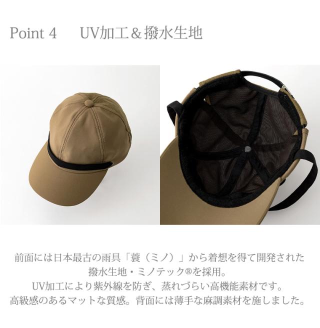 風が強い日に飛ばされるのを防ぐ顎紐は、フロントのデザインポイントにも。アジャスターにはワンポイントとなるMATOの刻印入り。