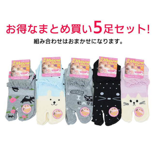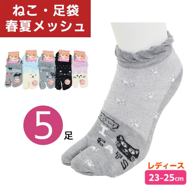 足袋ソックス 猫 5足セット メッシュ 春夏 足袋 靴下 ねこ靴下 ネコ ねこ ソックス 女性 23-25cm くるぶし丈【メール便送料無料】ショート丈 レディース スニーカーソックス ショートソックス 靴した ネコ好きさんにはたまらない