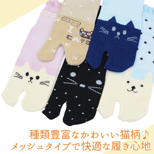 涼しいメッシュタイプのネコ柄足袋ソックスです!