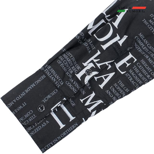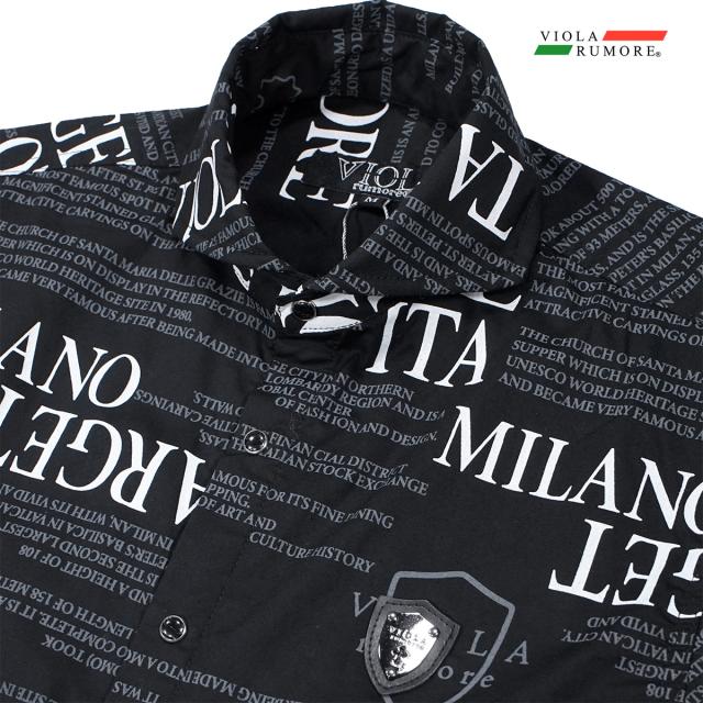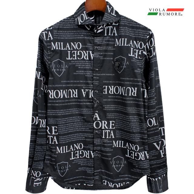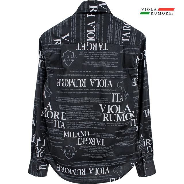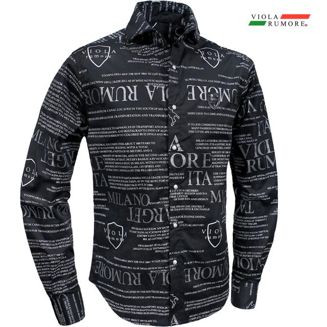 VIOLA rumore ヴィオラ ビオラ シャツ 長袖 ホリゾンタルカラー 総柄プリント メンズ(ブラック黒) 52300