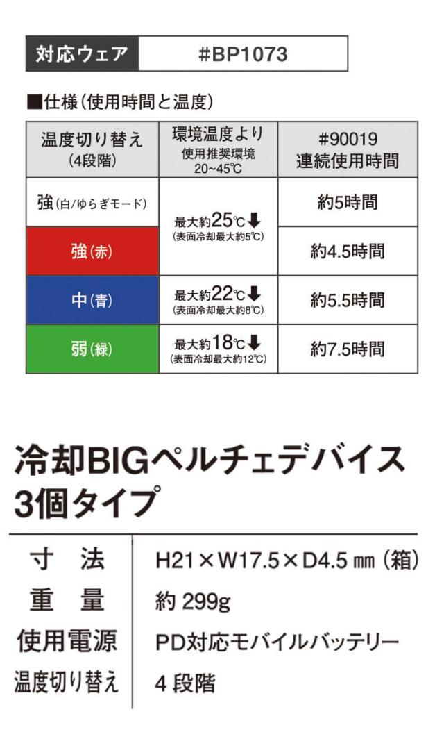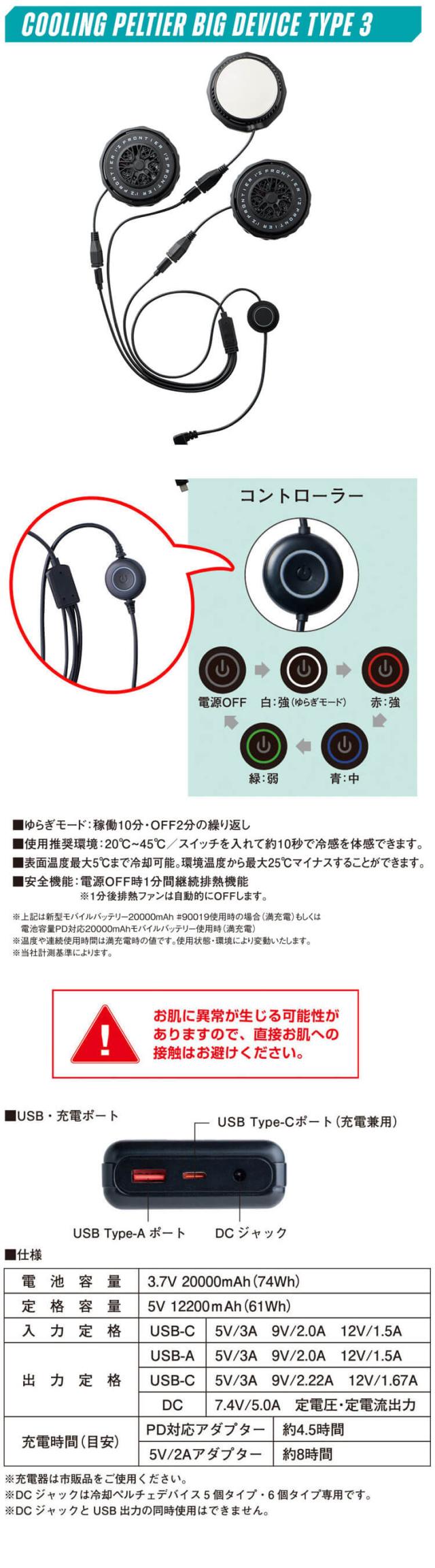 ・セット内容 :ベスト×1 3個付きビッグペルチェデバイス×1 モバイルバッテリー、取扱説明書×1