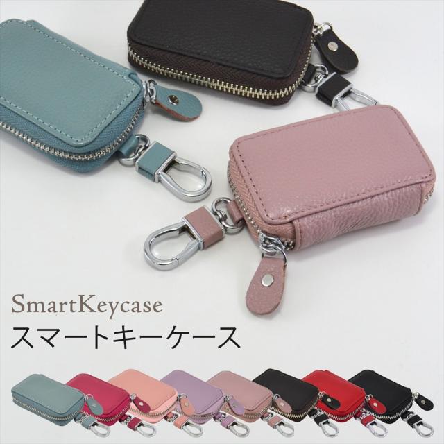 スマートキーケース レディース メンズ 人気 ミニ ニュアンスカラー くすみカラー キーケース スマートキー キーケース カバー カラビナ付き 車の鍵 小さい コンパクト シンプル ファスナー付き 取り外し可能 キーホルダー 鍵 カギ カード収納 カード かわいい おしゃれ