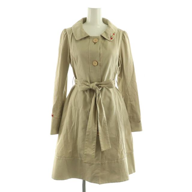 【中古】シンシアローリー CYNTHIA ROWLEY 刺繍 スプリングコート ビーズ ベルト付 3 ベージュ